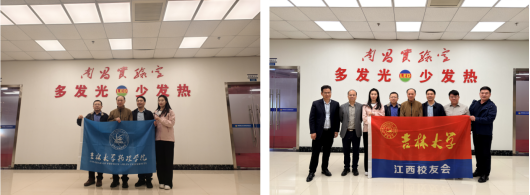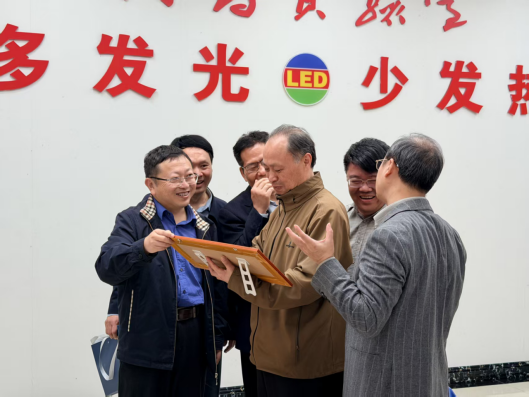 江西校友会会长吴国高、副会长兼秘书长罗琦、金黄光董事长杨俊宁、金黄光吉林运营中心总经理李明校友的陪同下,怀着崇敬之心拜访中国科学院院士江风益,参观南昌实验室。江风益1984年毕业于吉大物理系,是硅衬底LED技术开创者,荣获国家技术发明奖一等奖、全球半导体照明突出贡献奖等重要荣誉,是吉大物理人的骄傲。