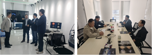 校友、海外高层次人才引进计划专家李超宏。李超宏介绍企业发展历程,分享高端眼科影像设备自主研发、打破国外技术垄断的奋斗故事。一行人现场体验Sky全眼影像平台,详细了解技术研发细节,学习校友以物理基础赋能医疗器械创新、科技报国的实践经验。邹勃称赞李超宏是吉大物理人学以致用的典范,希望他多为学院人才培养分享经验。