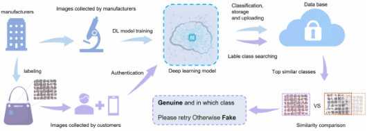 创新性地将抗氧化Cu纳米线与人工智能技术深度整合,成功构建出具有智能鉴别功能的防伪认证系统。该体系依托基于深度学习验证框架,创新耦合了具有多层级特征提取能力的卷积神经网络分析算法。由Cu纳米线构建的智能防伪标签展现出突破性性能:其不仅在2000次高强度机械弯折测试中保持稳定读取功能,更在85 ℃高温配合85%极端湿热的环境下,历经144小时严苛考验仍维持95%以上的特征匹配度,该数据与标准数据库对比呈现显著优势,充分验证了体系卓越的环境耐受性与结构稳定性。本研究成果为增强标签材料抗老化性能方面提供了有效策略,在包装工程、安全防护、电子器件等多领域开辟创新的应用前景。