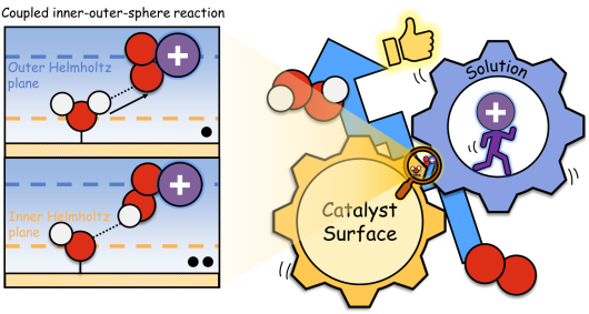 氧还原反应是能源转化技术的关键环节,却长期面临反应迟缓、产物难控的难题。科研界早已发现,在电解液中引入碱金属阳离子能显著提升过氧化氢(H2O2)的生成效率。然而,阳离子在原子尺度上的真实作用方式,一直是未解之谜。核心争议集中在两个问题:一是“高活性”问题,当催化剂表面被水分子覆盖、反应物难以接近时,阳离子如何加快反应?二是“选择性”问题,作为溶液中的离子,它们又如何调控反应路径,避免H2O2被过度还原?