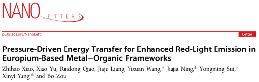 高压与超硬材料全国重点实验室/综合极端条件高压科学中心杨新一教授等人利用高压驱动能量转移实现铕基金属有机框架材料的红光发射增强。相关研究成果以“Pressure-Driven Energy Transfer for Enhanced Red-Light Emission in Europium-Based Metal–Organic Frameworks”为题发表在《Nano Letters》上。