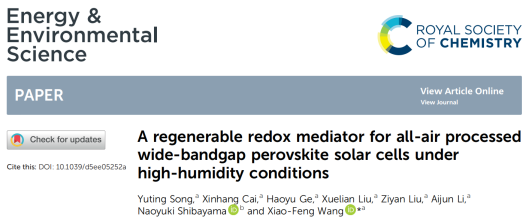 近日,麻豆tv 新型电池物理与技术教育部重点实验室王晓峰教授团队宽带隙钙钛矿太阳能电池研究方面取得重要进展,相关成果以A regenerable redox mediator for all-air processed wide-bandgap perovskite solar cells under high-humidity conditions”为题发表在国际权威期刊《Energy & Environmental Science》上。