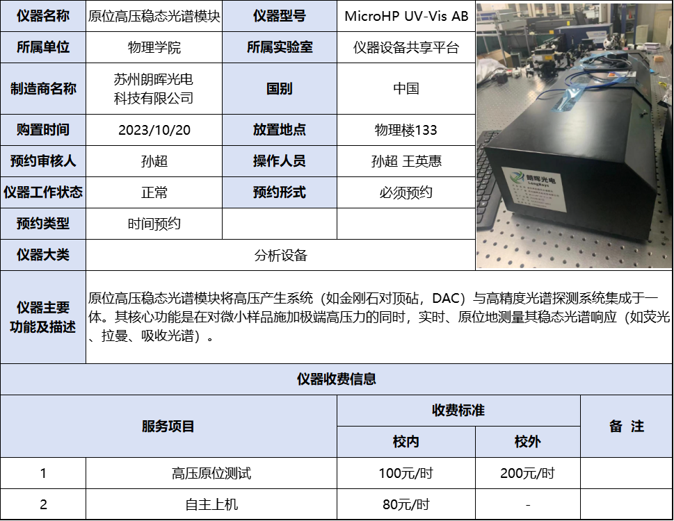 原位高压稳态光光谱模块