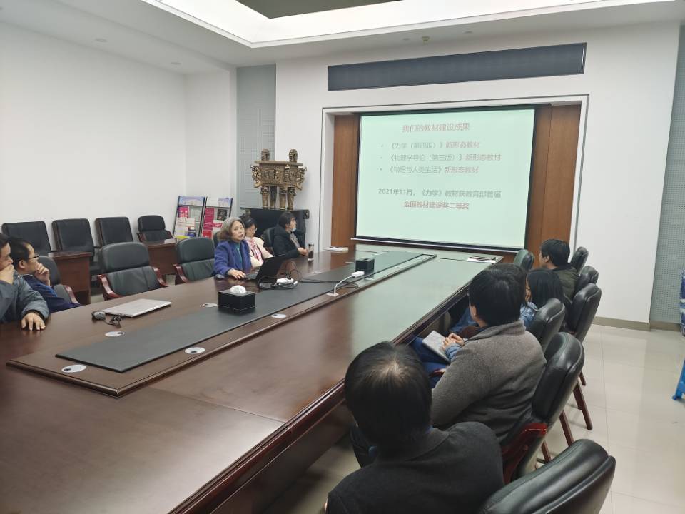 于12月9日下午在物理楼301举办了教材建设与选用交流研讨会。会议由学院课程思政建设小组组长王海华教授主持,2020年“宝钢优秀教师奖”获得者倪牟翠教授和校教学督导专家崔志文教授担任主讲人。副院长王海军教授及各主干课程教师代表参加了本次活动。
