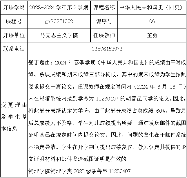 根据《关于进一步明确本科生课程考核等有关问题的通知》(校教字[2018]47号)文件有关精神,现对以下课程成绩更正进行公示: