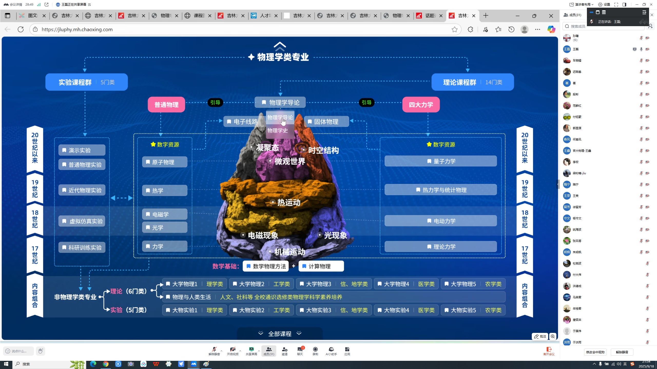 随后,王鑫简要介绍了学院AI赋能课程建设的基本情况,提出物理主干课程知识点和图谱建设有利于梳理物理主干课程体系,有利于学生建立物理思维;教学模式的转变也有利于对学生进行学情分析,实时获得学生的反馈,了解教学效果;AI技术的使用也强化了对课程内容的打磨,为申请省级乃至国家级一流本科课程奠定良好的基础。