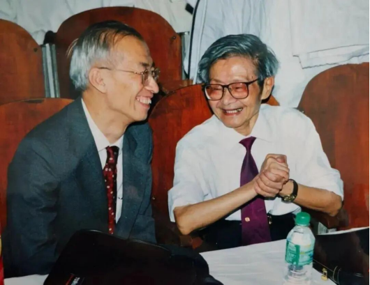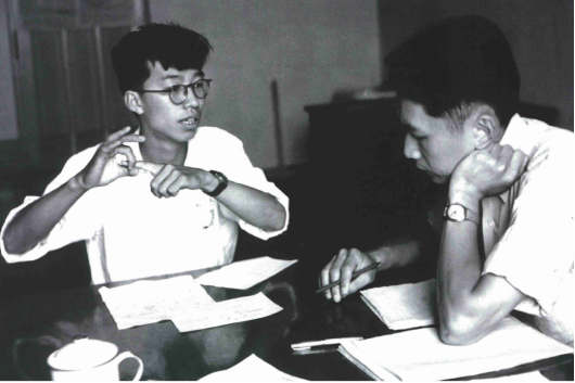 2  1953年,朱光亚(右)对陈佳洱(左)进行原子物理课程口试
