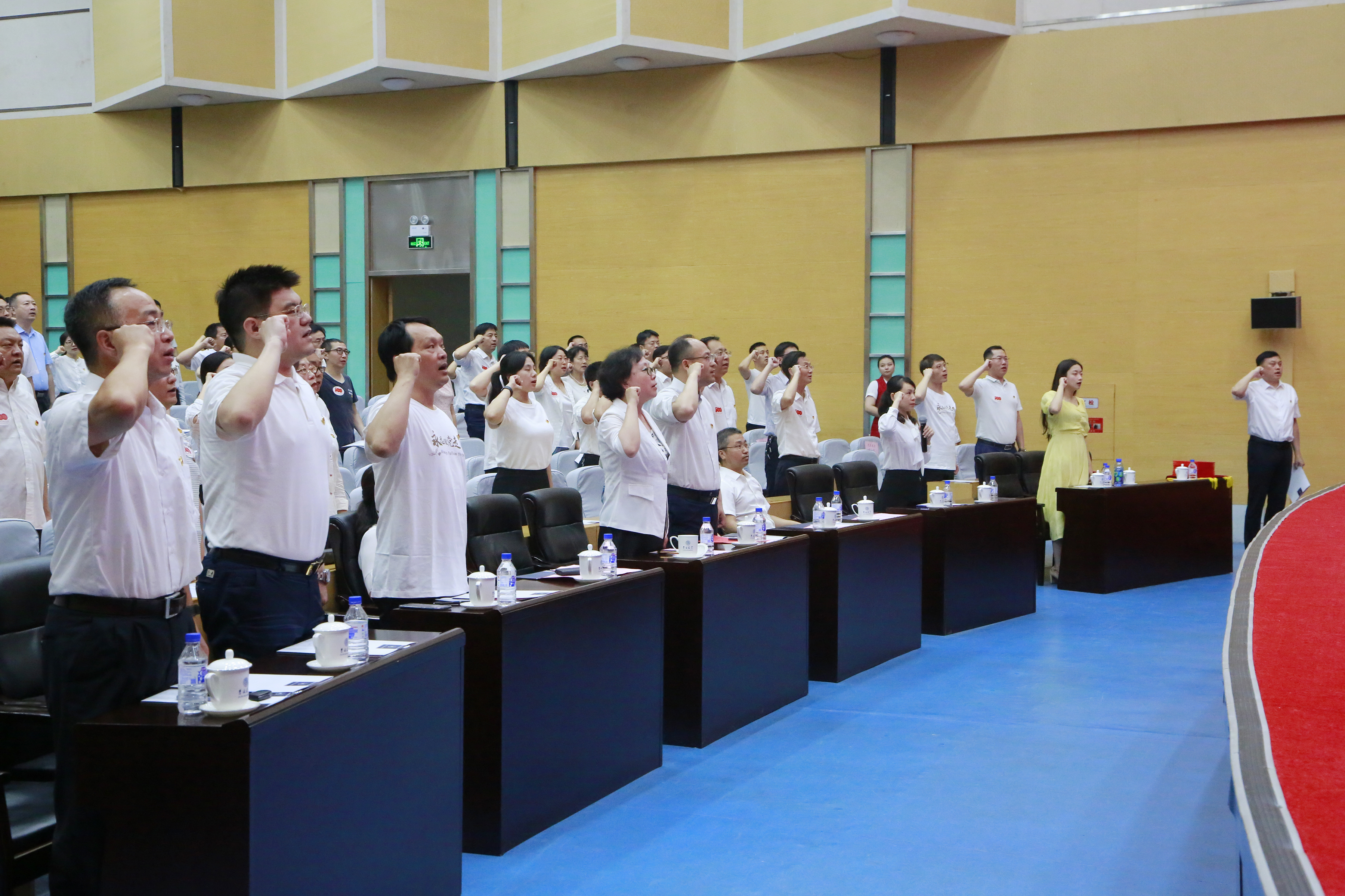 与会全体党员重温入党誓词,进一步坚定理想信念,牢记共产党员的初心和使命。