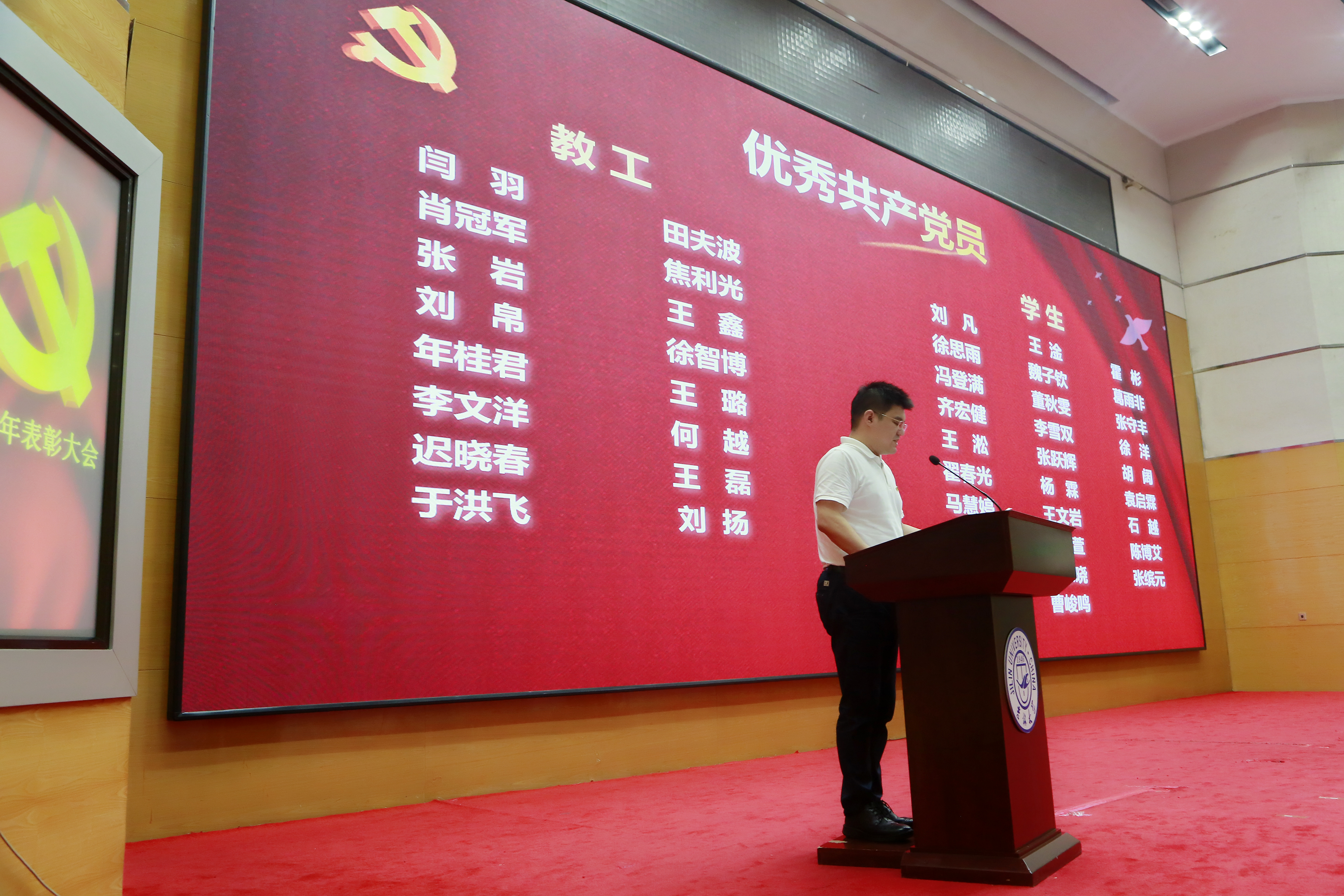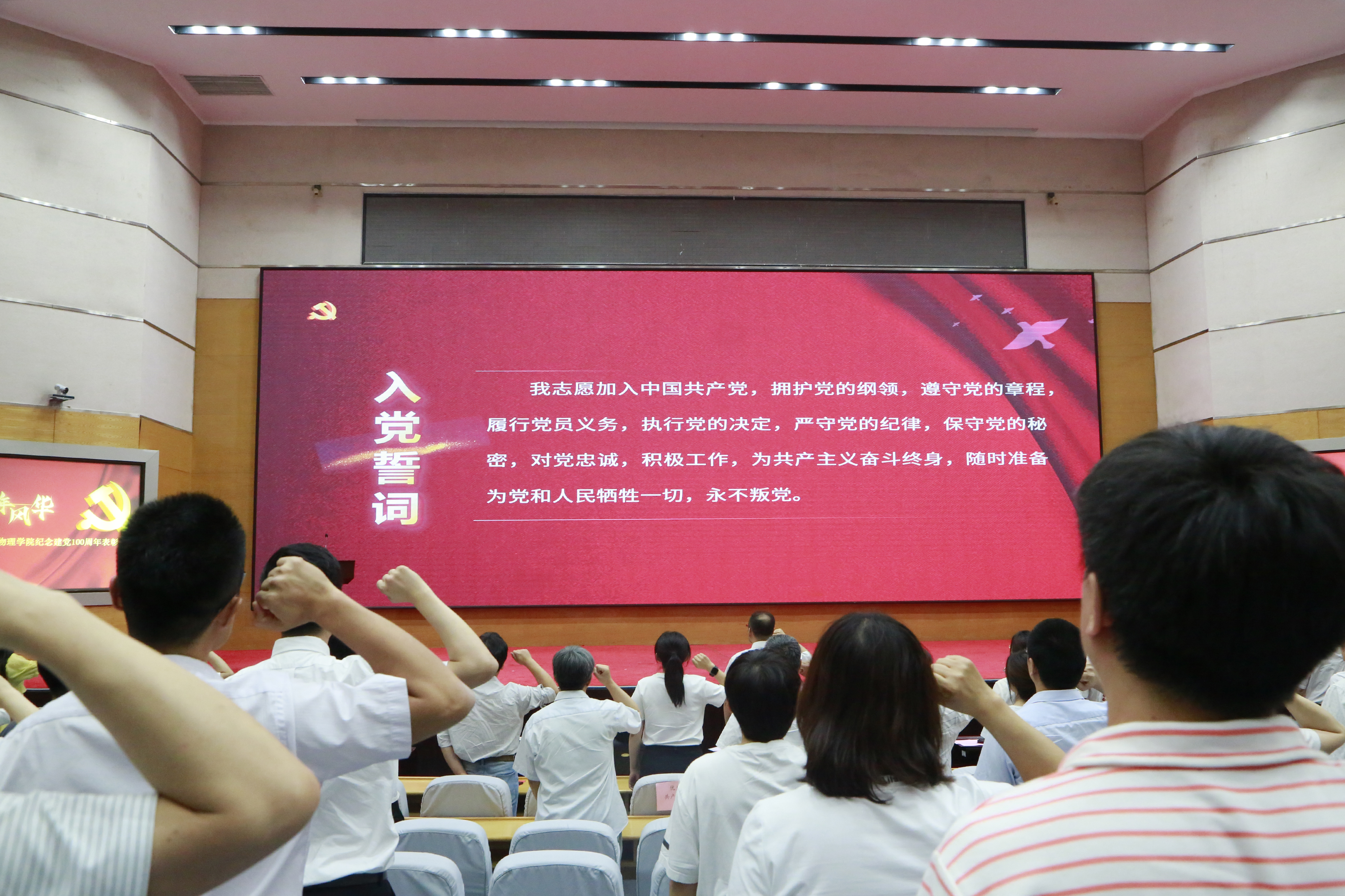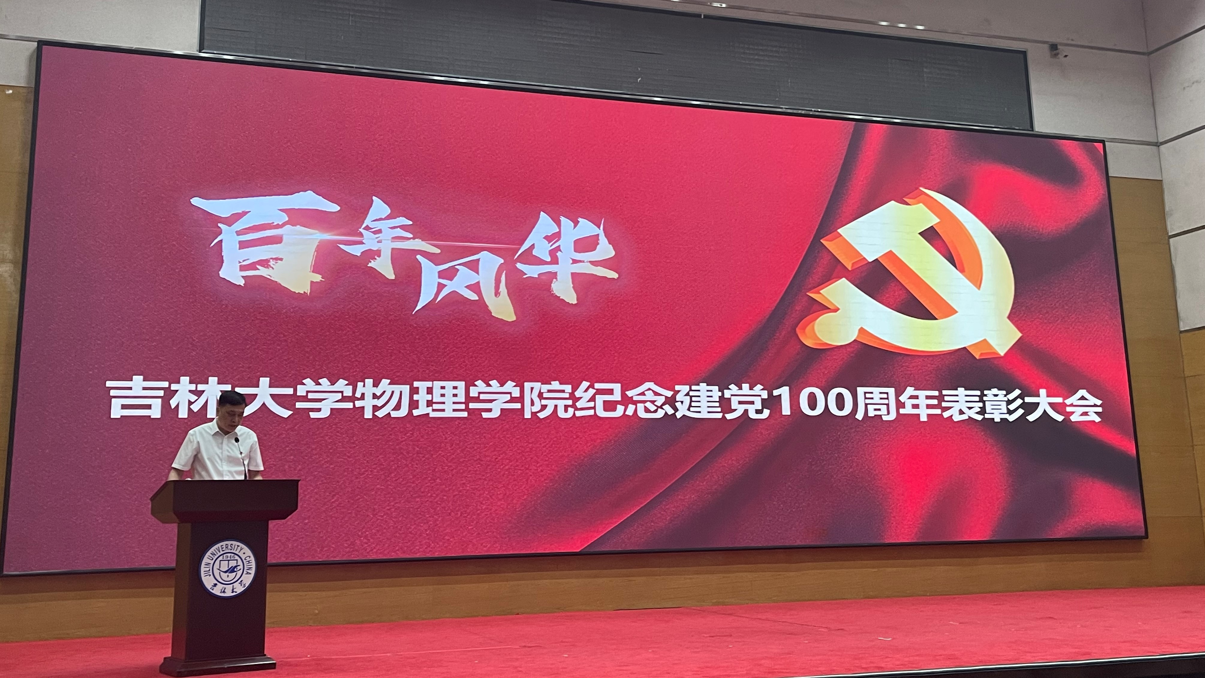 于东荣报告厅隆重举办庆祝建党100周年暨“两优一先”表彰大会。出席会议有学院全体党政班子成员、两委委员、师生党员、入党积极分子。表彰大会由学院党委副书记、纪委书记唐宗明主持。