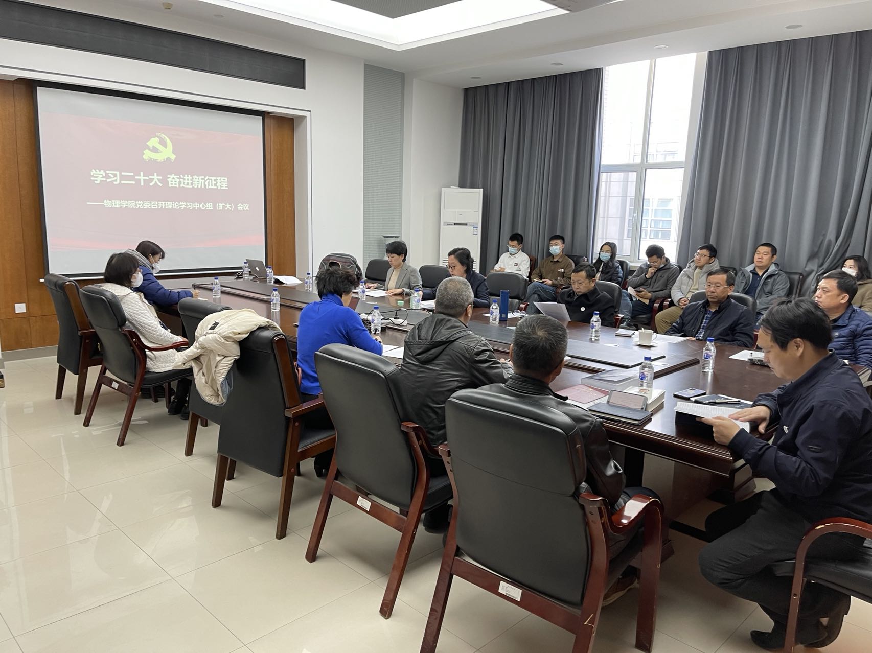 会前,学院党委理论学习中心组成员结合二十大报告内容及实际工作撰写发言提纲并在会上分享学习体会。党的二十大是全党全国各族人民迈上全面建设社会主义现代化国家新征程、向第二个百年奋斗目标进军的关键时刻召开的一次十分重要的大会。党的二十大报告是党和人民智慧的结晶,是党团结带领全国各族人民夺取中国特色社会主义新胜利的政治宣言和行动纲领,是马克思主义的纲领性文献。深入学习宣传贯彻党的二十大精神是当前和今后一个时期学院的首要政治任务,全院上下必须切实提高政治判断力、政治领悟力、政治执行力,深刻领会习近平新时代中国特色社会主义思想,深刻理解教育、科技、人才是全面建设社会主义现代化国家基础性、战略性支撑作用,切实把提升物理学科高质量发展放在第一要务,踔厉奋发、勇毅前行,为全面建设社会主义现代化国家而不懈奋斗。