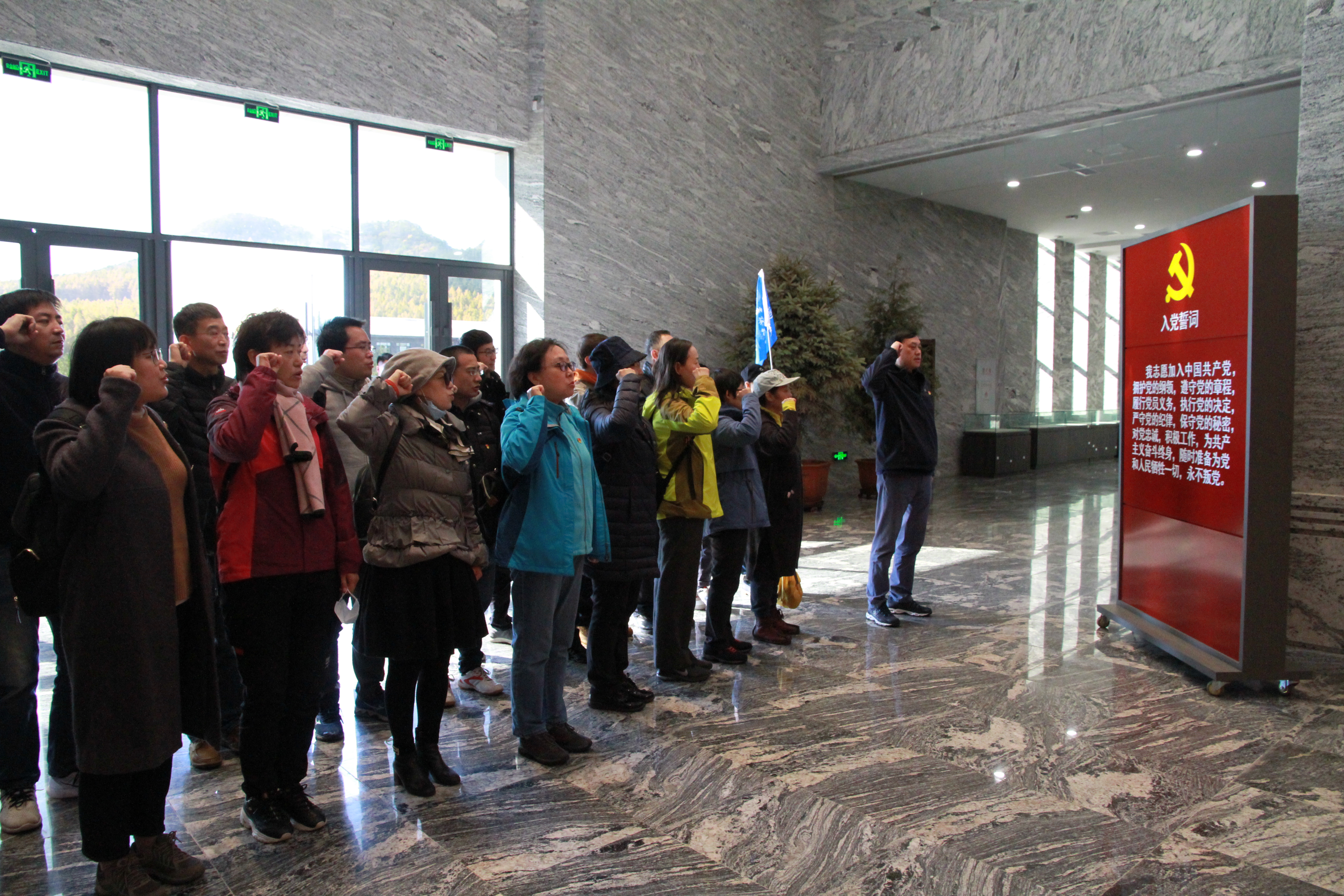 在党委书记孟文卓带领下,党员同志走进“三下江南”战役纪念馆,面对鲜红的党旗,高举右拳,字字铿锵,重温自己对党忠诚的铮铮誓言,表达“不忘初心、牢记使命”的坚定政治信念,牢记共产党员的政治责任和历史使命。