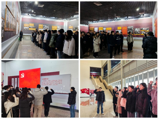 随后,全体人员走进长春革命烈士纪念馆,在讲解中重温革命岁月。珍贵的历史影像和文物,特别是抗美援朝英雄事迹的生动讲述,让先烈们的牺牲精神深深震撼着每位同志。在党旗前,博士生党员岳磊带领全体党员重温入党誓词,铿锵誓言回荡馆内。教师党员勉励学生将缅怀之情化为实际行动,让青春在党和人民需要的地方绽放。