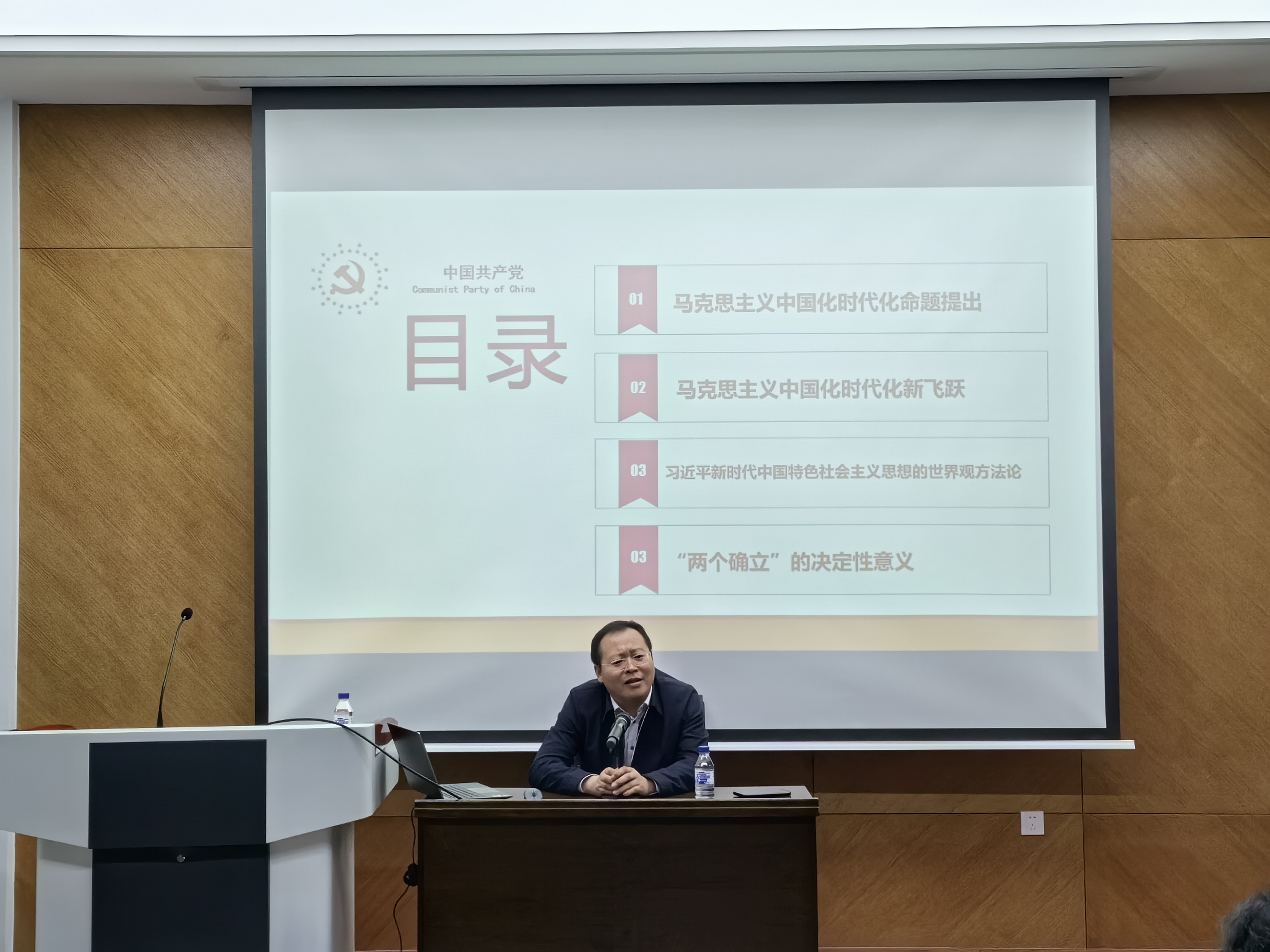 孙贺教授从“马克思主义中国化时代化命题提出”“马克思主义中国化时代化新飞跃”“习近平新时代中国特色社会主义思想的世界观方法论”“‘两个确立’的决定性意义”四个方面对习近平新时代中国特色社会主义思想进行了系统的全面的生动阐述。他表示,中国共产党确立习近平同志党中央的核心、全党的核心地位,确立习近平新时代中国特色社会主义思想的指导地位,反映了全党全军全国各族人民共同心愿,对新时代党和国家事业发展、对推进中华民族伟大复兴历史进程具有决定性意义。