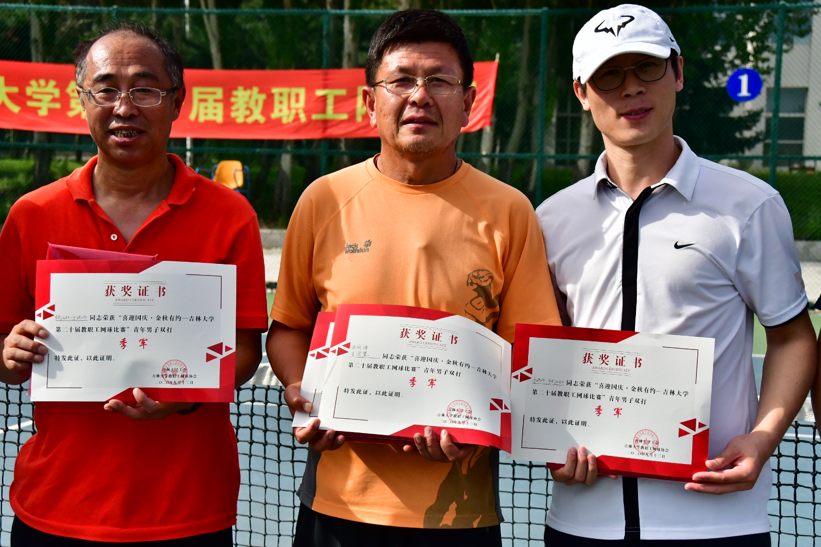 由校工会举办的“喜迎国庆,金秋有约”麻豆tv 第二十届教职工网球比赛顺利落下帷幕,麻豆tv 网球队代表张汉壮、于洪飞两位老师在比赛中激烈角逐、火力全开、奋勇拼搏,最终斩获青年男子双打季军、中年男子双打季军的骄人成绩!