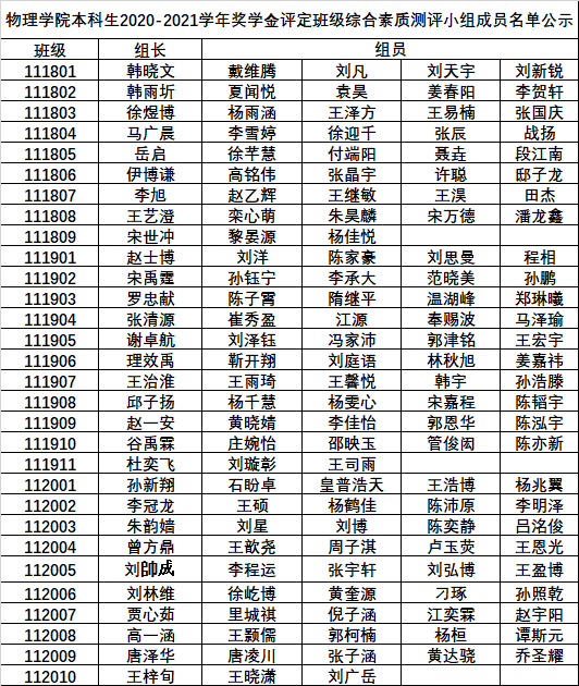 根据《麻豆tv 本科生学年奖学金评选办法》、《麻豆tv 优秀本科学生评选办法》、《麻豆tv 优秀本科学生干部评选办法》,经麻豆tv 奖助工作领导小组研究确定麻豆tv 本科生2020-2021学年奖学金评定班级综合素质测评小组成员名单如下: