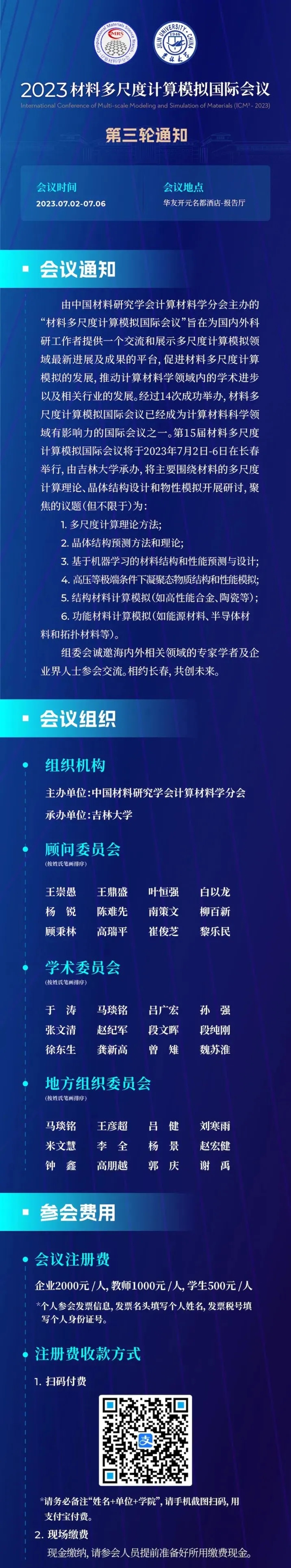 2023材料多尺度计算模拟国际会议(第三轮通知)