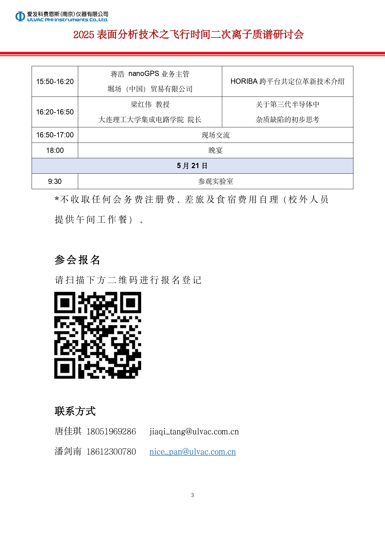 2025表面分析技术之飞行时间二次离子质谱研讨会