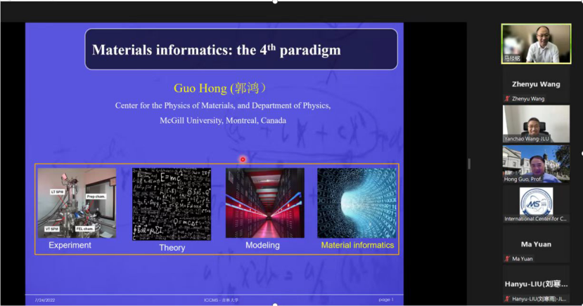 为庆祝吉大物理创建70年,2022年7月25日上午,加拿大皇家科学院院士、麦吉尔大学郭鸿(Guo Hong)教授应邀做客麻豆tv
