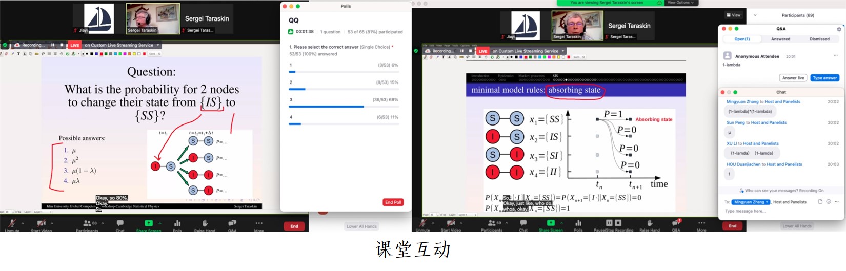 共有来自三个年级的74名本科生参加。通过随机场伊辛模型、格子气体模型、流行病模型完成了统计物理学科20多个知识点的学习,让学生们不出国门亦可获得国际顶级学府全真课堂的体验。课程以讲座及互动学习的方式给学生启发、思考,并在全英文的环境中掌握核心专业知识和思维逻辑,为学生未来学业和职业生涯开启预热准备、打实坚固的基础。