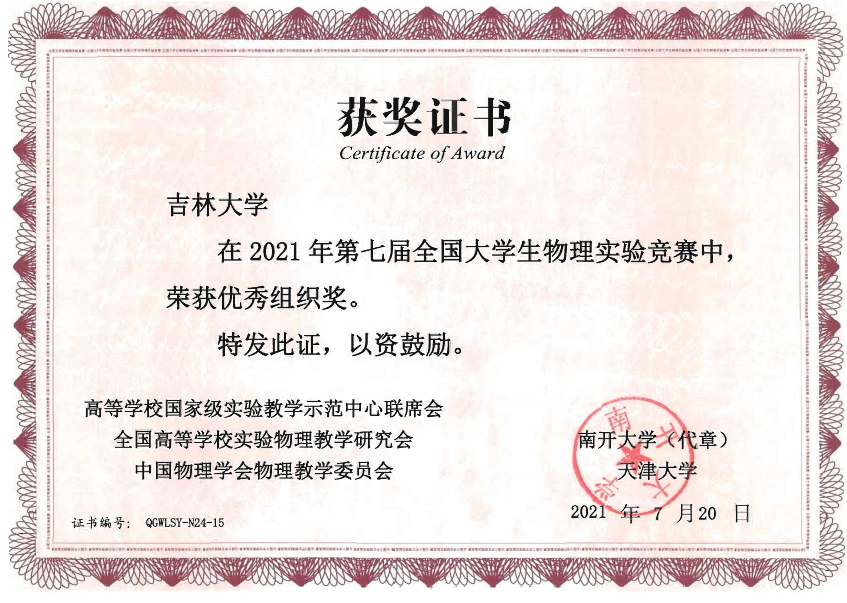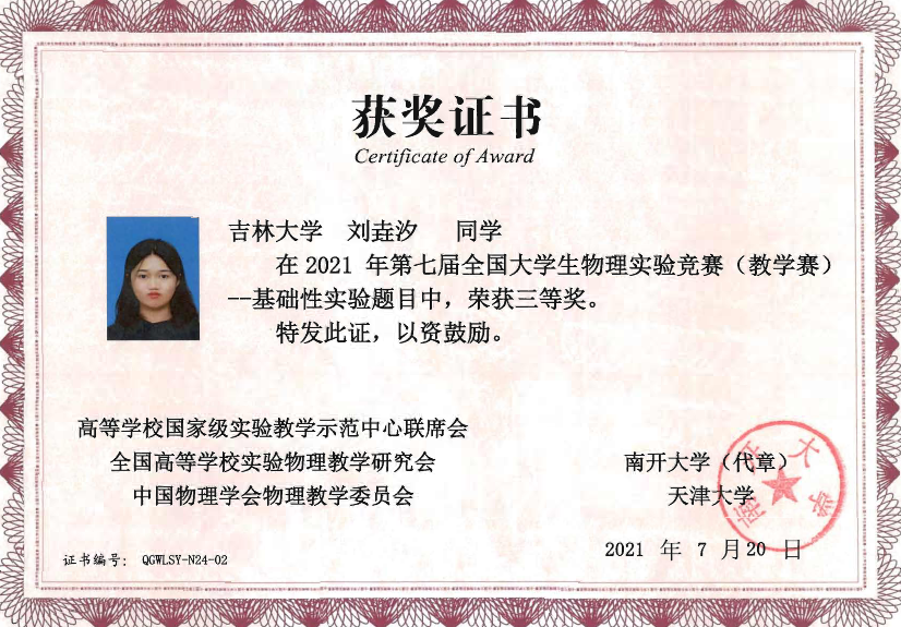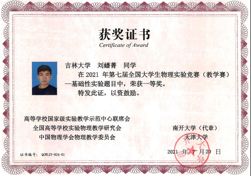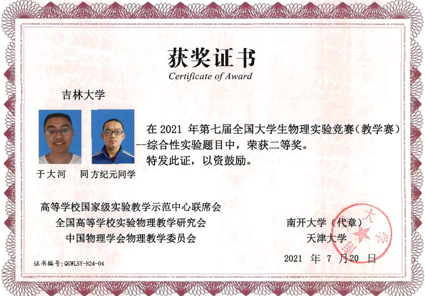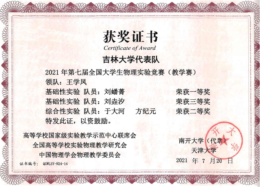 的4名本科生组成,他们在比赛中取得了佳绩:2019级本科生刘蟠菁获基础性实验一等奖,2019级本科生于大河、方纪元获综合性实验二等奖,2018级本科生刘垚汐获基础性实验三等奖, 麻豆tv