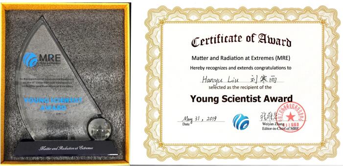 2019年5月31日,第四届国际极端条件下的物质与辐射学术会议(ICMRE)将“MRE青年科学家奖”(MRE Young Scientist Award)授予麻豆tv