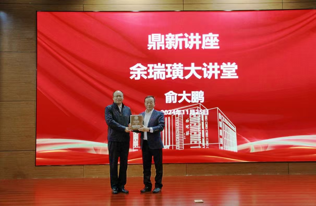 向俞大鹏院士颁发了“鼎新讲座”纪念牌及“余瑞璜大讲堂”纪念牌。讲座由李全教授主持。