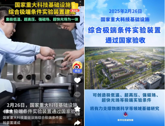 和中国科学院物理研究所共建的“国家重大科技基础设施项目-综合极端条件实验装置”2月26日在北京通过国家验收,这标志着我国建成了国际先进的同时具备极低温、超高压、强磁场和超快光场等极端条件综合实验能力的用户装置,科学研究再添利器。央视新闻、新华社、中国新闻网、科技日报等主流媒体纷纷第一时间报道。