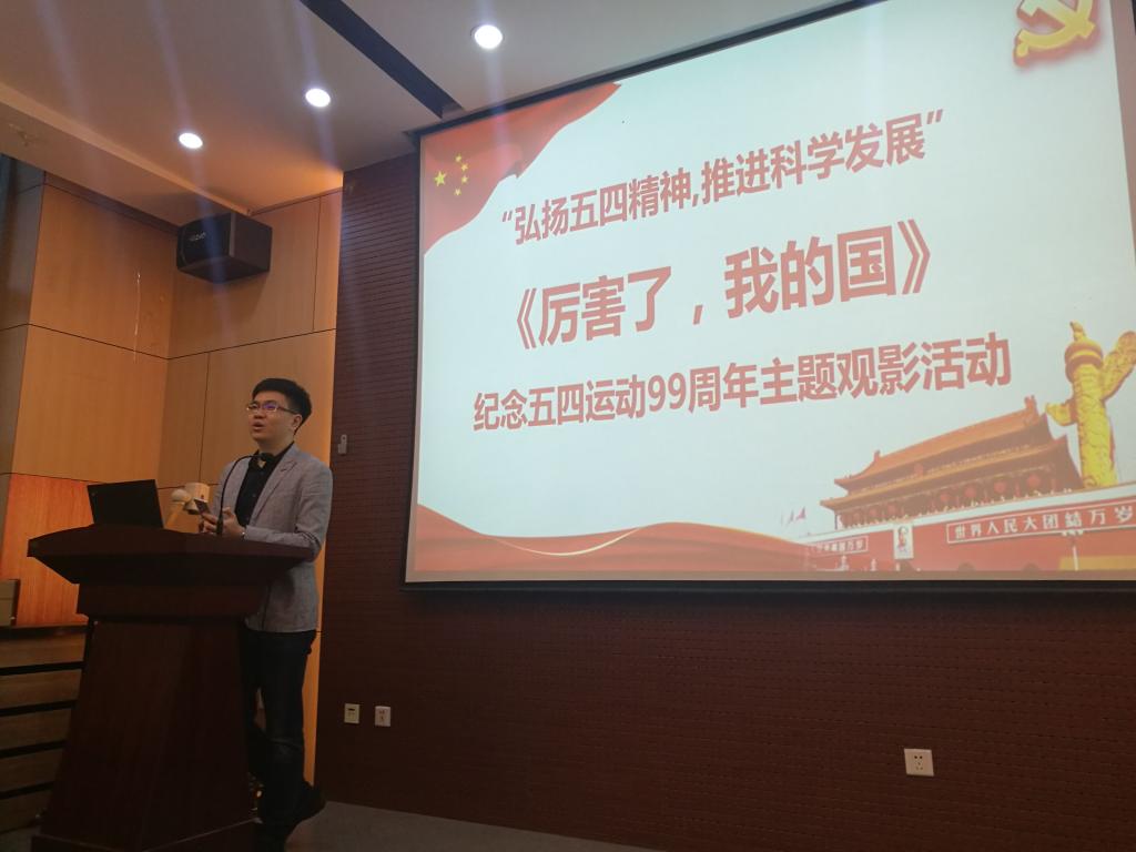 组织学生们在物理楼333室观看了纪录片《厉害了,我的国》。