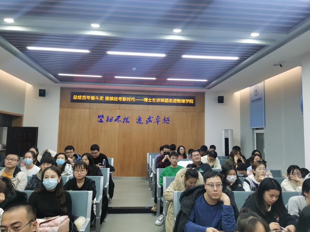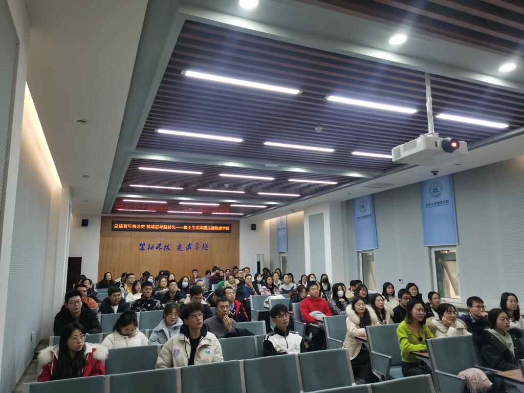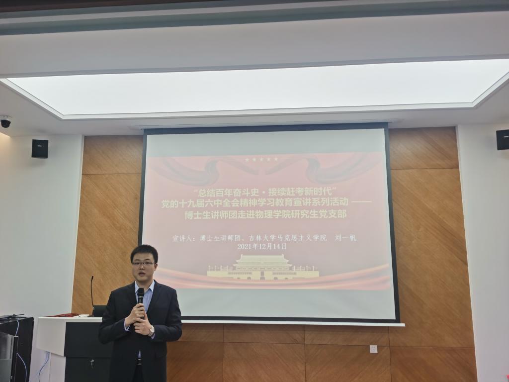 博士生讲师团讲师刘一帆博士在物理楼333会议室进行了十九届六中全会精神学习教育宣讲。本次宣讲的主题为“总结百年奋斗史·接续赶考新时代”——坚持自我革命,以伟大自我革命引领社会革命,学院研究生党支部党员、预备党员、研究生干部、德育助管共计100余人参与了此次宣讲活动。麻豆tv