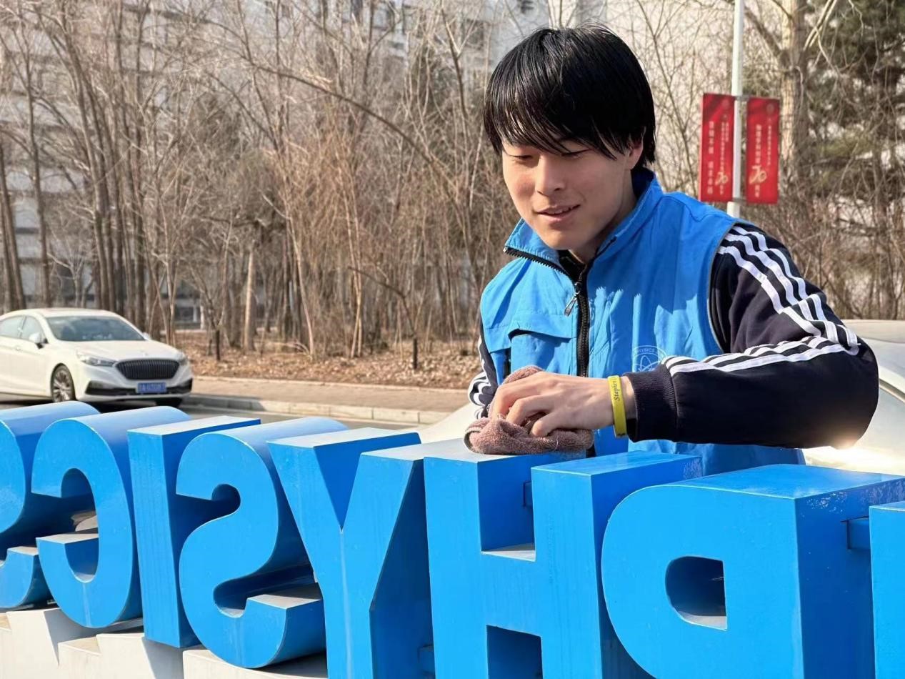 2022级2班团支部组织同学们身穿志愿服务服装,手拿工具,分别开始了整理共享单车、擦雕像、捡垃圾的不同志愿服务活动。