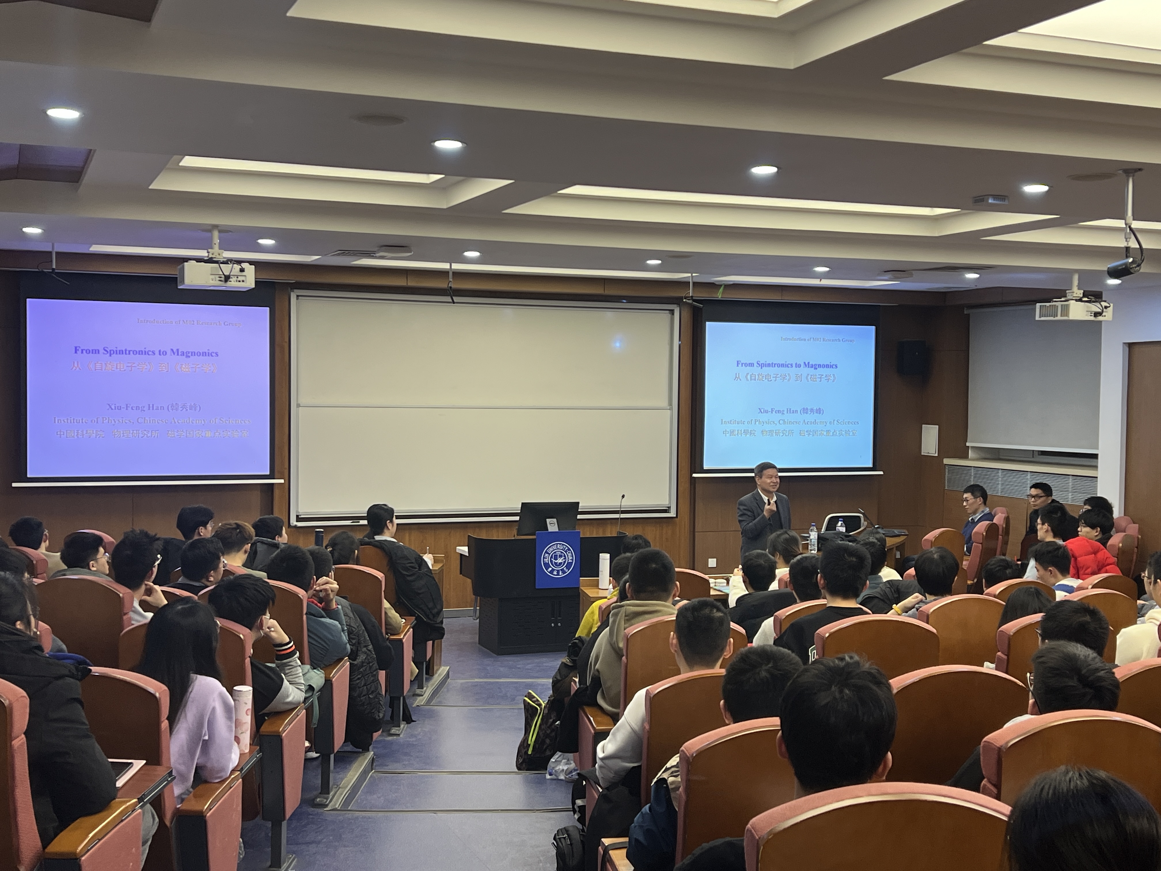 党委副书记兼副院长杨讴菡,本科生辅导员刘扬、车禹剑、赵一安出席活动。会场内座无虚席,同学们对宣讲会翘首以盼。首先杨讴菡书记为讲座进行了开场介绍,之后鲁年鹏特聘研究员、韩秀峰研究员先后进行了学术报告,分别介绍了各自领域内的主要进展、前沿问题和各自课题组的主要成果,回答了同学们踊跃的提问,并同同学们对双方关心的学术问题进行深入的交流探讨,会场内气氛热情澎湃。物理所的老师们还准备了物理所的研究生招生宣传册,向到场的同学们分发,针对麻豆tv