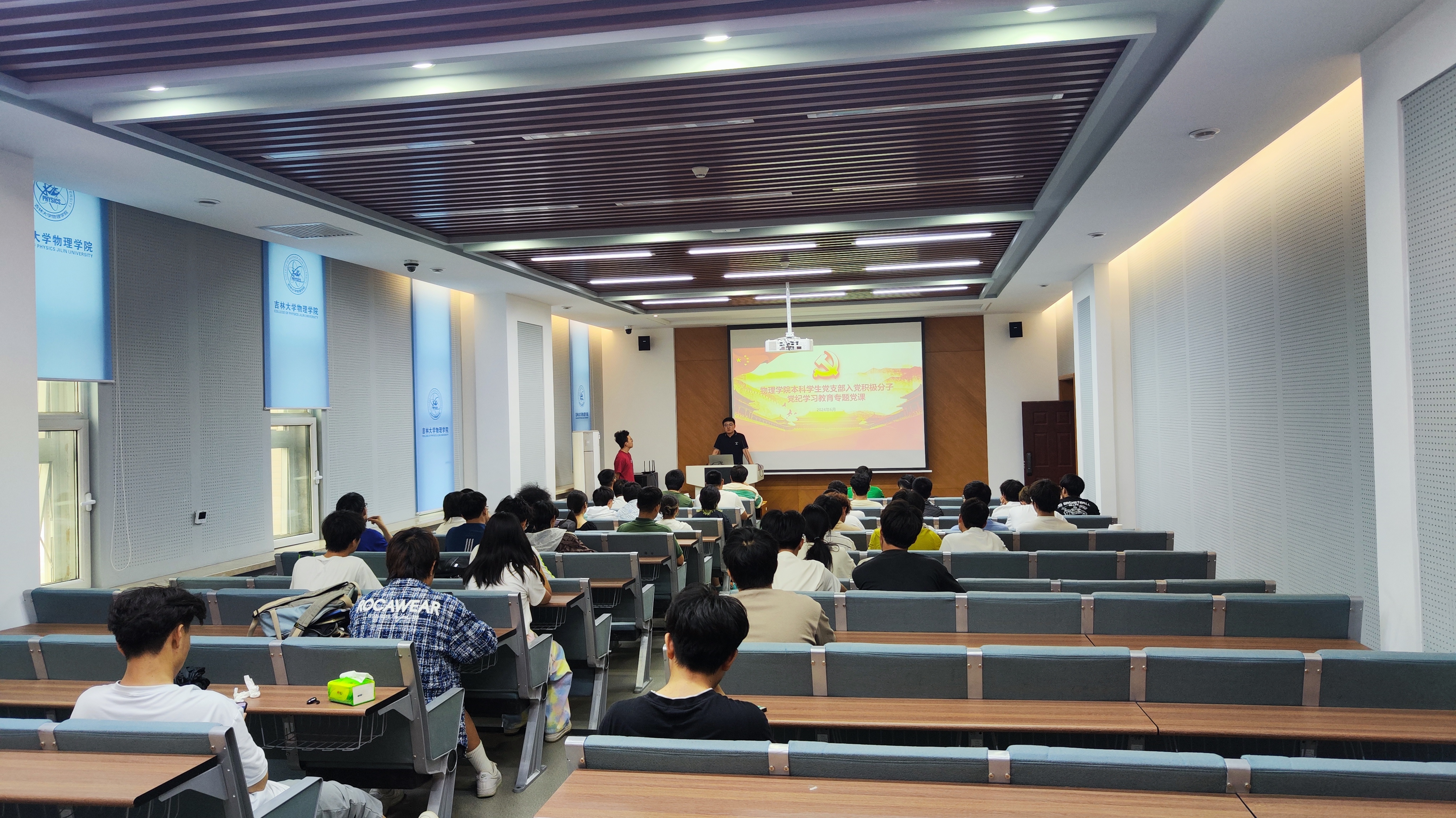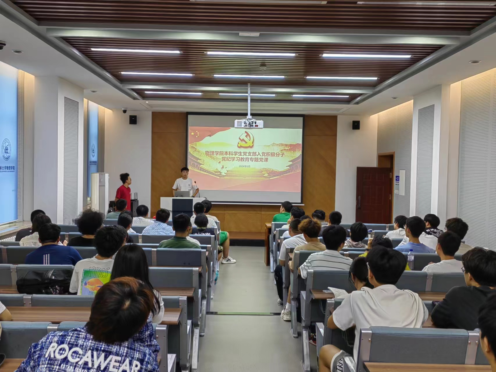 本科学生第一党支部书记车禹剑,本科学生第二党支部书记刘扬为2024年上半年积极分子讲授专题党课。