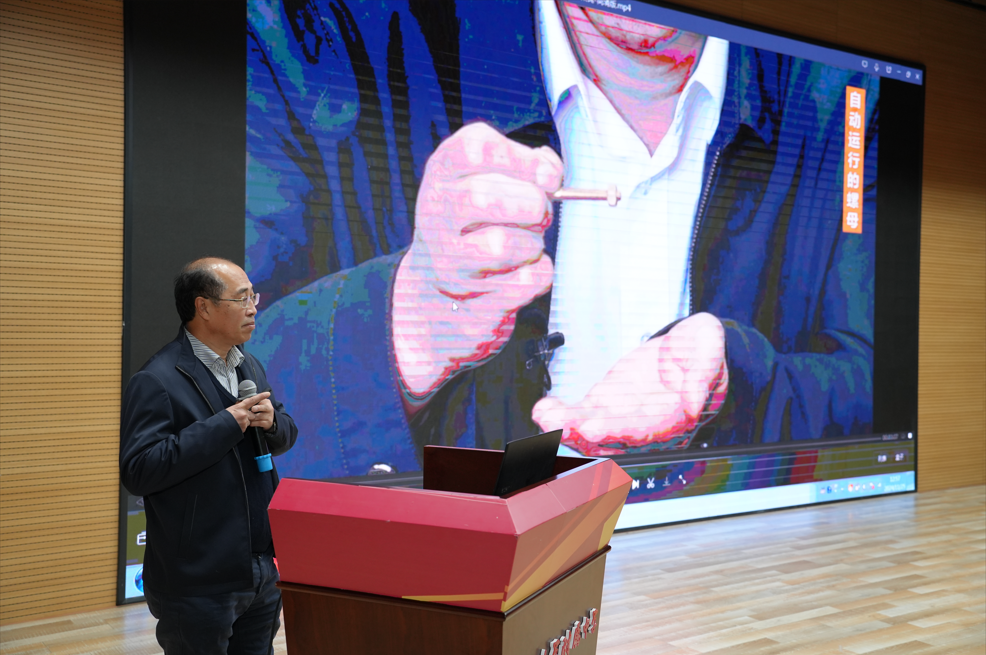 教学委员会主任委员张汉壮教授以《物理科学之美,演绎人类文明》为题为同学们上了一堂特别的物理科普课。张教授凭借其在物理领域的深厚造诣、卓越成就以及独特的教学魅力,以深入浅出、妙趣横生的讲解方式,将复杂晦涩的物理知识巧妙转化为生动形象、易于理解的科学盛宴,充分展现了其扎实的学识功底与渊博的知识储备。在讲座过程中,张教授不仅引领同学们尽情领略了物理科学的雄浑磅礴之美,深入感悟其在人类文明漫长演进历程中的中流砥柱作用,更点燃了同学们内心深处对物理科学的炽热热爱与无尽探索欲望。激励着同学们在科学的浩瀚星空中勇敢无畏地追寻真理之光,持续不断地提升自身科学素养与综合实践能力,为具有创新精神与实践能力的新时代杰出人才奠定坚实基础。