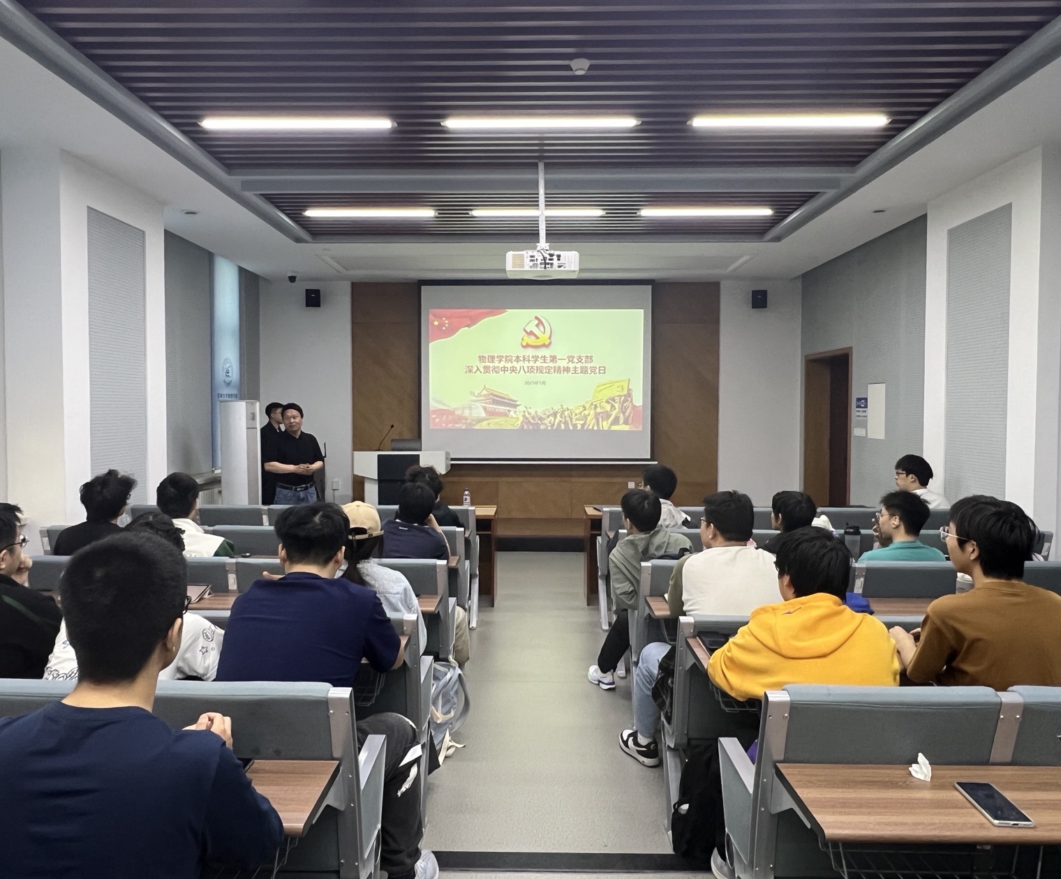 之后本科学生第一党支部书记车禹剑带领党员回顾了中央八项规定制定和落实的过程,深入学习领会中央八项规定及其实施细则精神,之后组织观看了《深入贯彻中央八项规定精神:锲而不舍落实中央八项规定精神》微党课,作为学生党员,大家深刻体会到,无论是学术研究、学生工作还是日常生活,都应保持严谨务实的态度,杜绝形式主义;应严守政治纪律,在校园生活中自觉抵制不良风气;应反对学术浮躁,杜绝抄袭、数据造假等行为,坚守学术诚信。